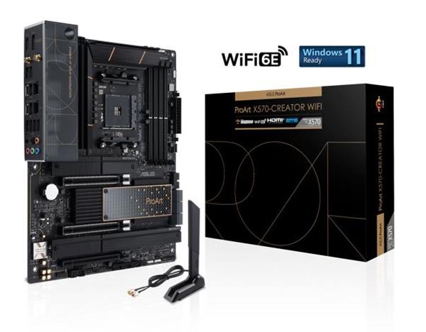 Asus ProArt X570-CREATOR WIFI, AMD Socket AM4, ATX, 2xPCI Express, CrossFireX, 3xM.2 + SATA3 RAID, Thunderbolt 4, 7.1-ljud, WiFi 6E, Bluetooth, 10Gbe+2.5Gbe LAN