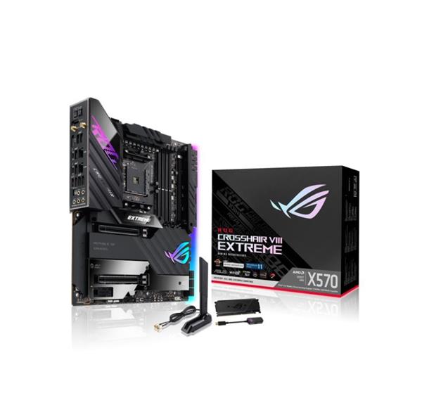 Asus ROG Crosshair VIII Extreme, AMD Socket AM4, X570, ATX, 2xPCI Express, SLI, 4xDDR4, 5xM.2 + SATA3, 2xThunderbolt4, ROG SupremeFX 7.1-ljud, 2x10Gbe + 2x2.5Gbe LAN, WiFi 6E, Bluetooth, Aura Sync RGB