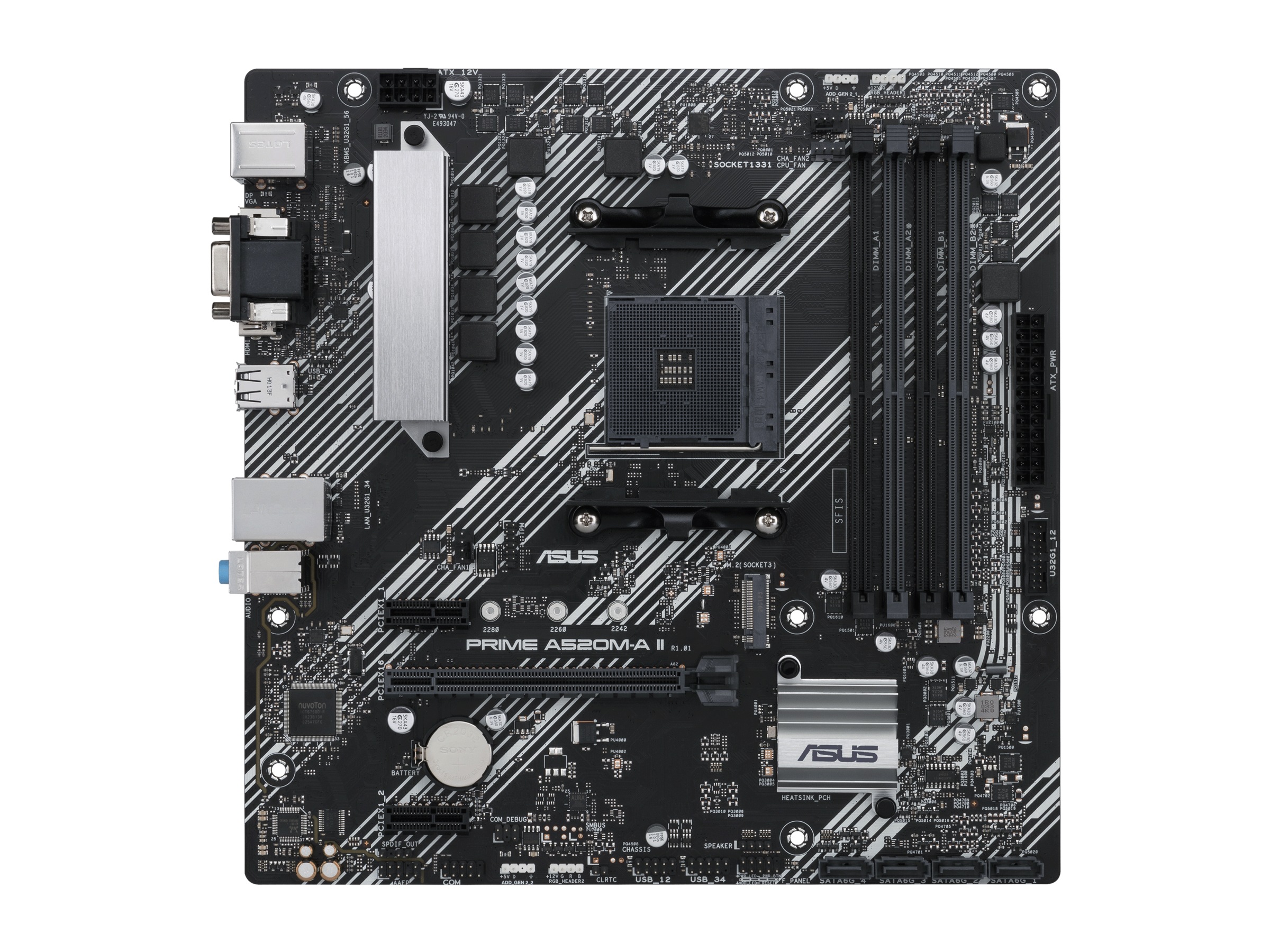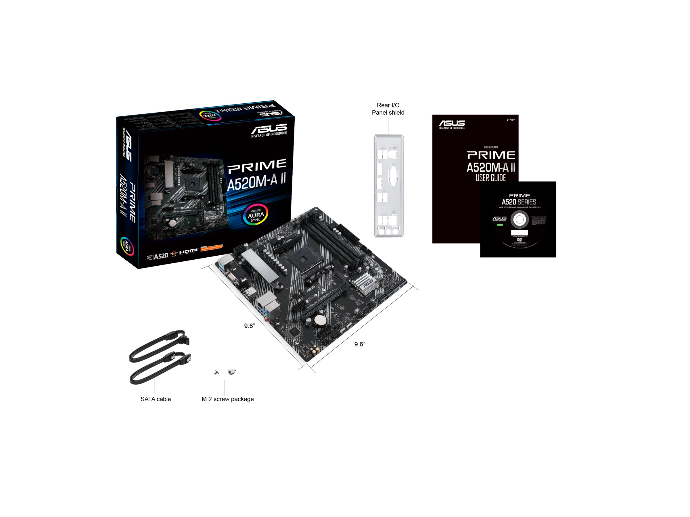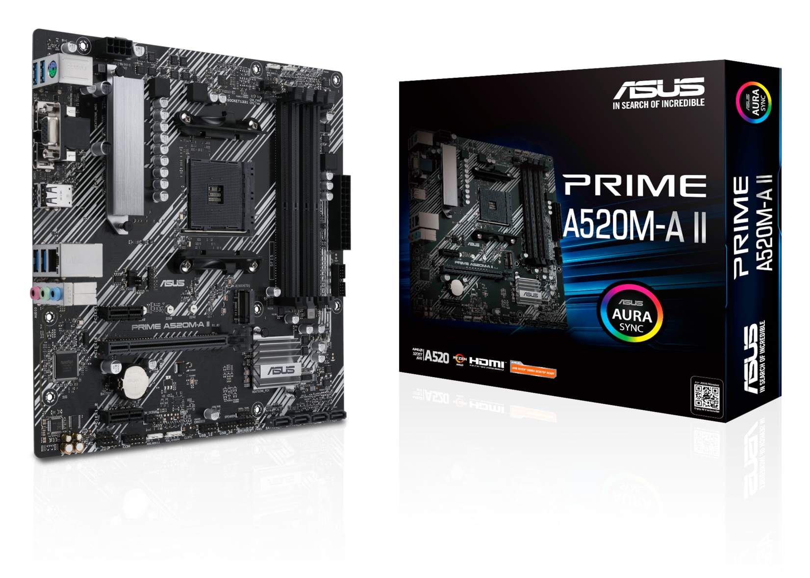 Asus PRIME A520M-A II, AMD Socket AM4, A520, MicroATX, 4xDDR4, PCI Express, M.2 + SATA3 RAID, VGA/HDMI/DP, 7.1-ljud, USB 3.1, GigaLAN, Aura Sync RGB
