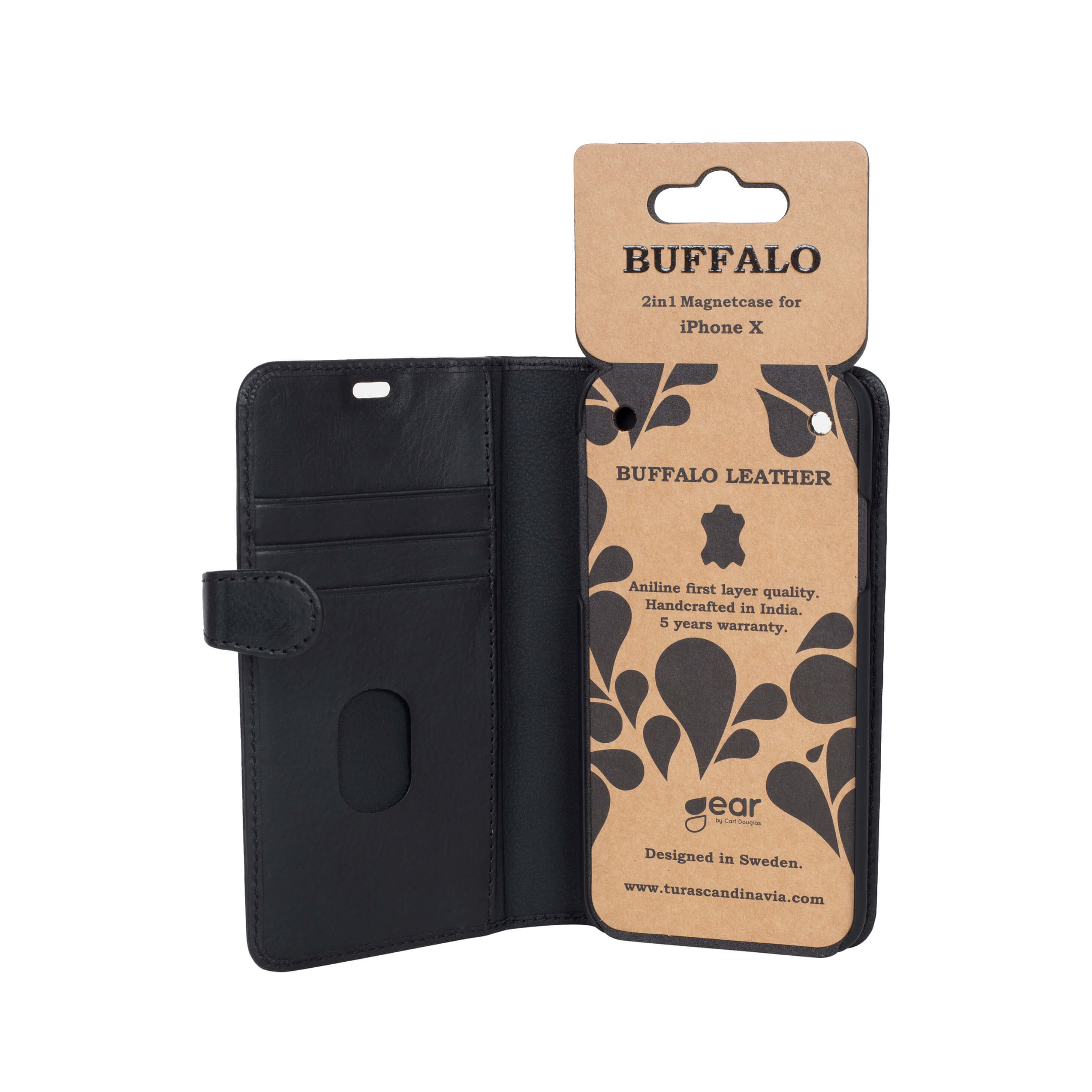 Plånboksfodral BUFFALO iPhone X/Xs med plats för kreditkort, magnetlås - Svart