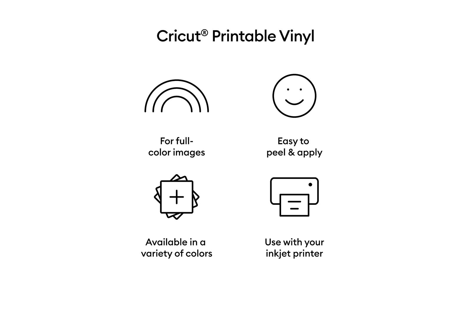 Gör egna klistermärken i fyrfärg och mer! Detta innovativa material fungerar med din vanliga bläckstråleskrivare för att skriva ut och sedan konturskära med Print then cut-funktionen. Skapa bara din design och skriv ut den, sedan känner din Cricut skärmaskin automatiskt igen och precisionsskär runt formerna med hjälp av registreringsmärkena. Perfekt för att piffa upp din bärbara dator, dekorera inomhus, göra etiketter och mycket mer.