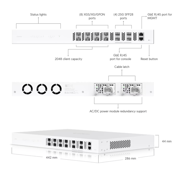 Ubiquiti Network UISP-FIBER-OLT-XGS, 4xSFP28 25GbE, 8xXGS/XG/GPON