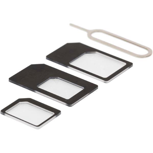 Förpackningen innehåller: Nano till Micro adapter, Nano till Mini adapter, Micro till Mini adapter samt öppnare för sim-korts hållare.