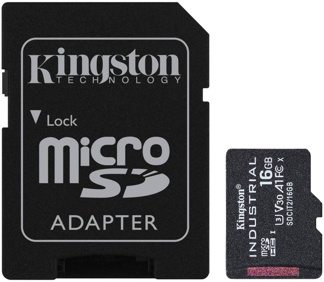 Micro Secure Digital SDHC 16 GB Kingston Industrial pSLC, 100/80 MB/sek, Class 10, UHS-I U3, V30, A1, inkl. SD-adapter