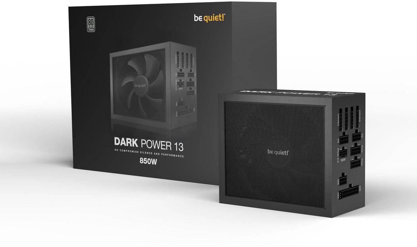 The be quiet! Dark Power 13 850W offers 80 PLUS® Titanium efficiency, virtually inaudible operation, and ATX 3.0 compliance for next-gen GPU compatibility.
