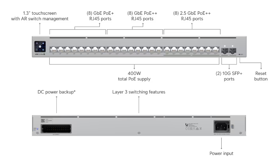 Ubiquiti UniFi USW Pro Max 24 PoE, 8x2.5GbE PoE++, 16xGigabit PoE+, 2x10GbE SFP+, Layer3, 400W, Etherlighting