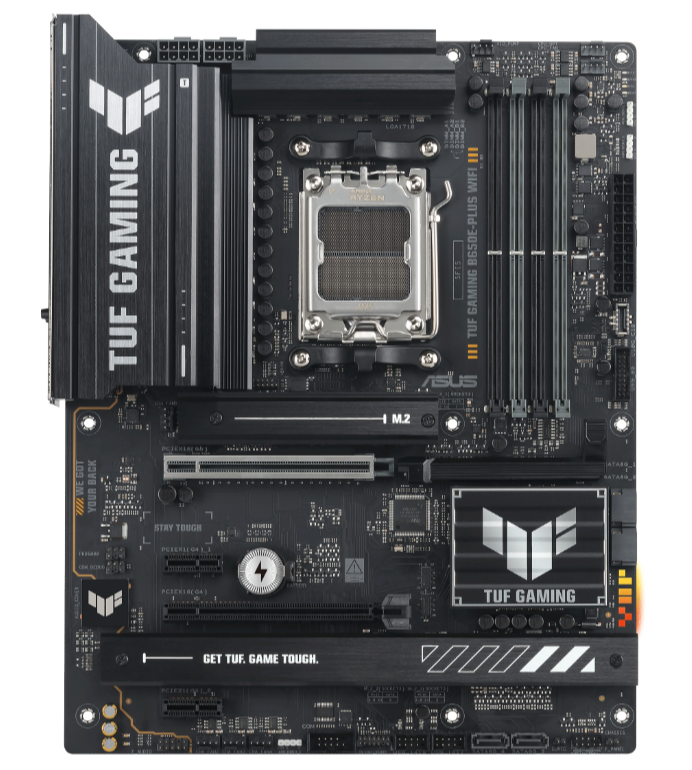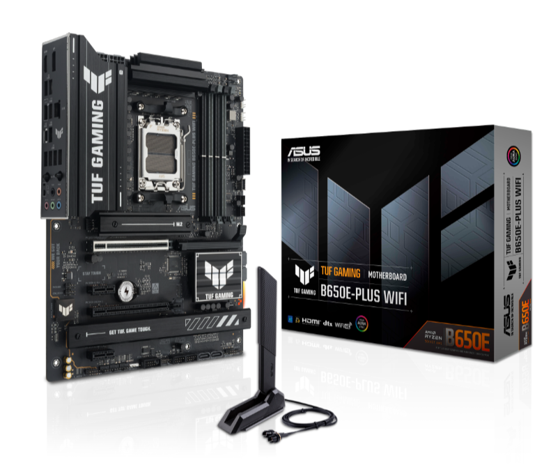 ASUS TUF GAMING B650E-PLUS WIFI takes all the essential elements of the latest AM5 Socket for AMD Ryzen™ Desktop Processors and combines them with game-ready features and proven durability. Engineered with military-grade components, an upgraded power solution and a comprehensive cooling system, this motherboard goes beyond expectations with rock-solid and stable performance for marathon gaming. TUF GAMING motherboards also undergo rigorous endurance testing to ensure that they can handle conditions where others may fail. Aesthetically, this model incorporates rugged off-black and geometric design elements to reflect the dependability and stability that defines the TUF GAMING series. This platform delivers the power and connectivity that advanced AI PC applications demand.