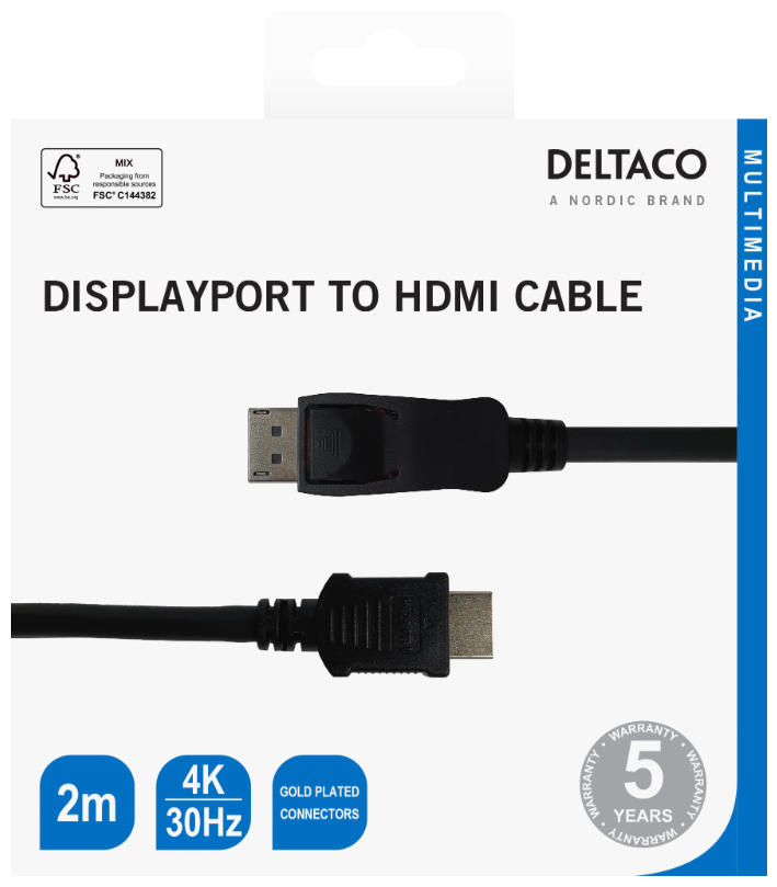 This DisplayPort to HDMI cable enables you to connect DisplayPort devices like computers and docking stations to a TV or monitor with a resolutions of up to 4K at 30Hz.