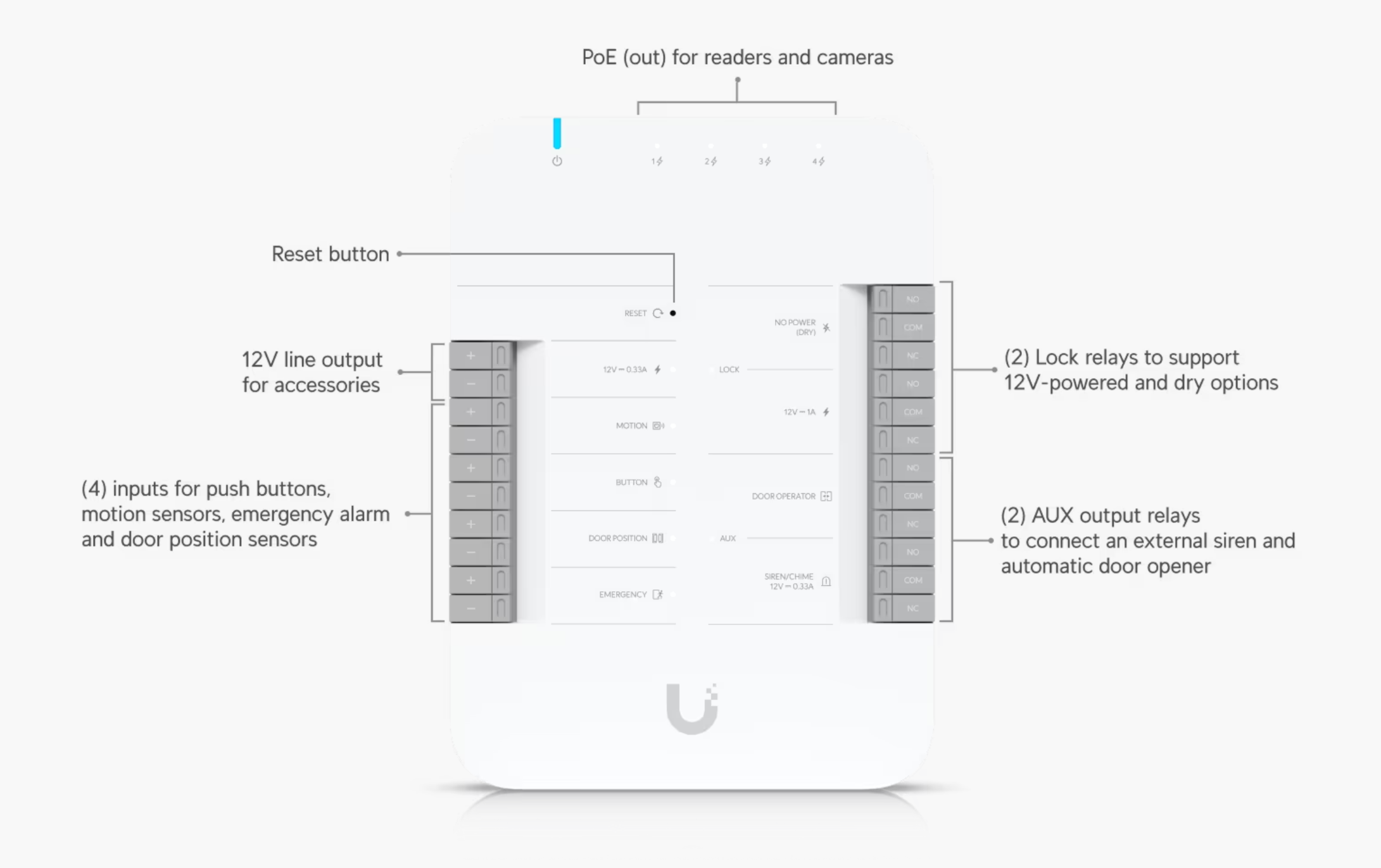 Request to exit, request to enter, remote release, door position sensor