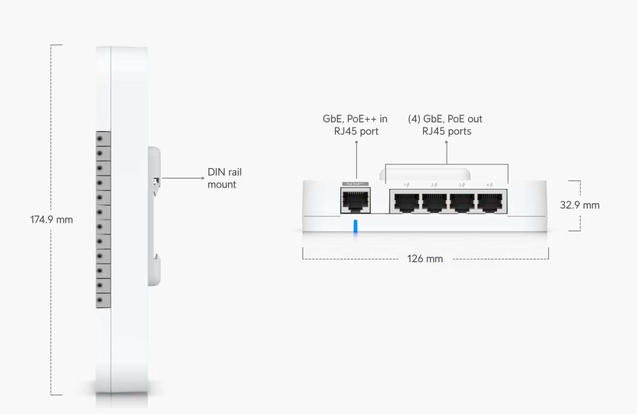 (1) PoE++ input, 50V DC, 1A