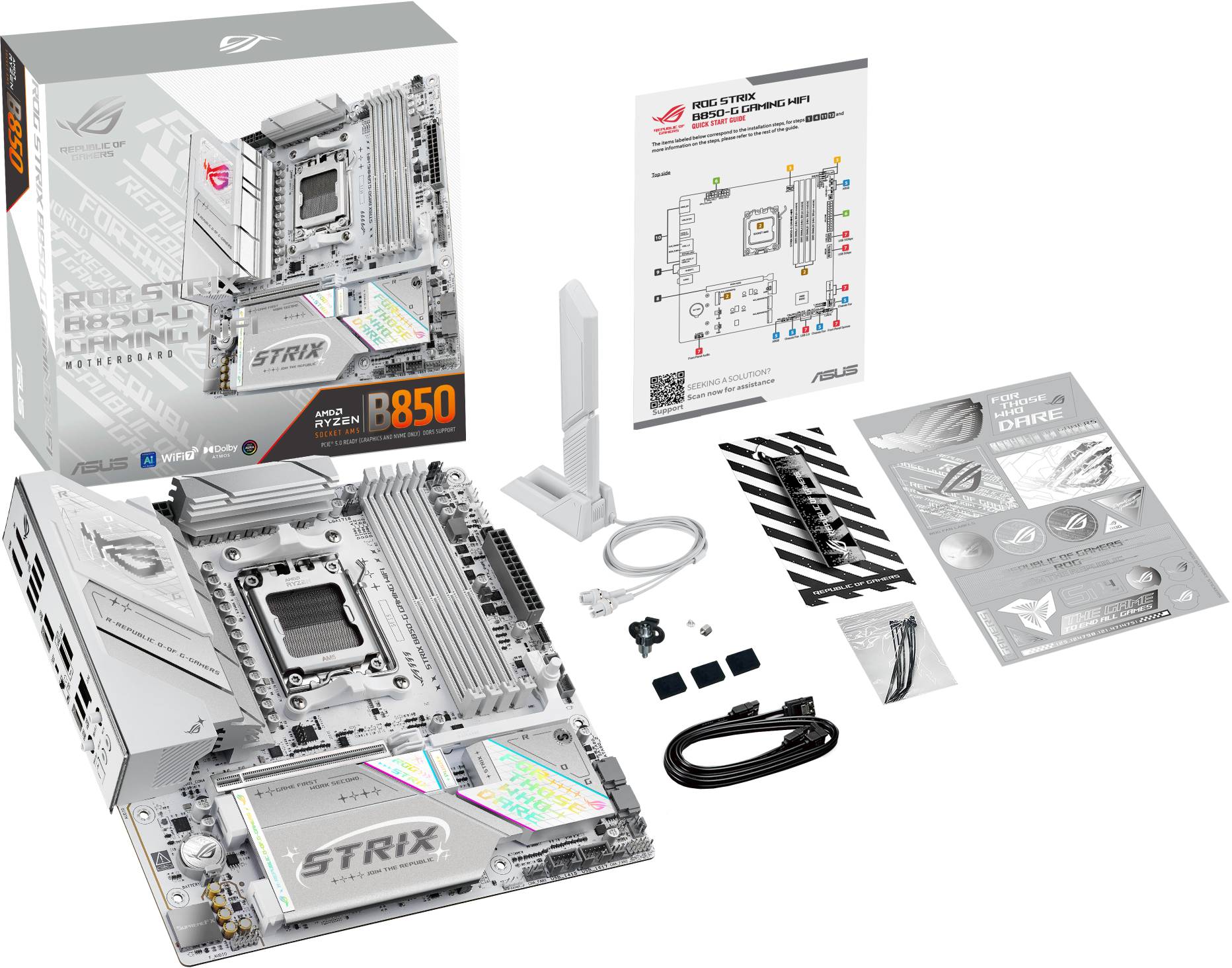 Unleash next-gen performance with the ROG Strix B850-G Gaming WiFi. Built with a sleek white PCB and featuring support for AMD Ryzen™ 9000 Series processors and cutting-edge DDR5 memory, this motherboard is equipped for top-tier gaming. PCIe® 5.0, USB 20Gbps Type-C® and WiFi 7 ensure unmatched speed and performance.