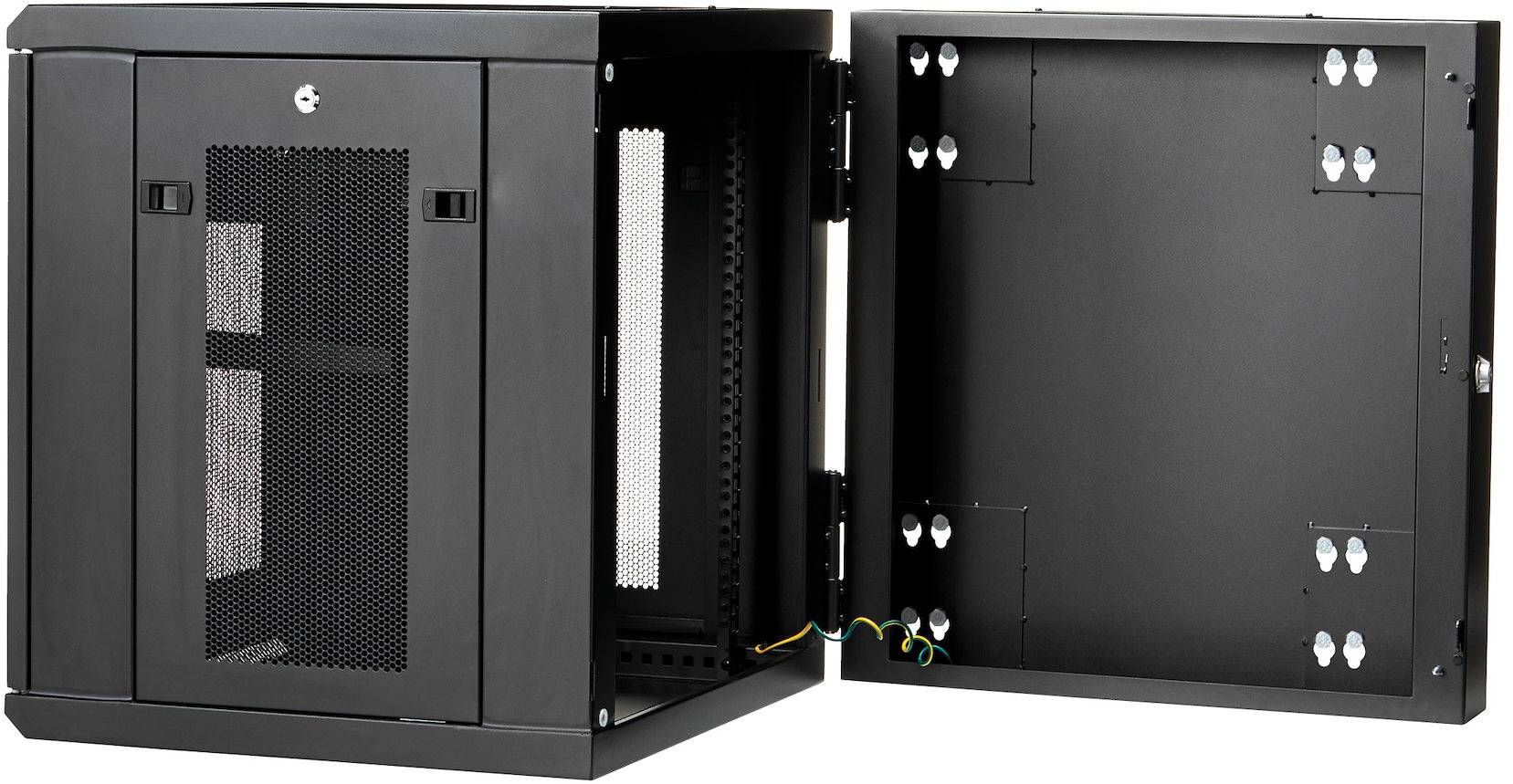 19" Skåp StarTech.com 12U, 610x655x640mm, stående eller väggmonterat, gångjärnsupphängning - Svart