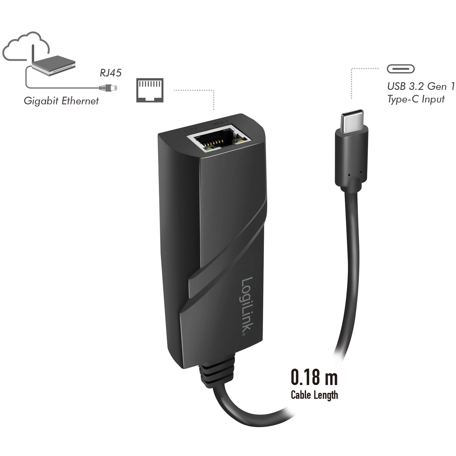 LogiLink USB-C till Nätverksuttag RJ45 Gigabit