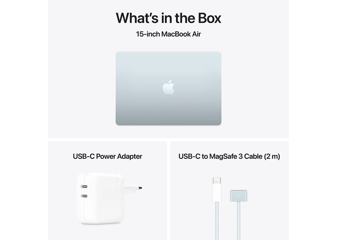 Inkluderade tillbehör Kompakt strömadapter dubbla USB-C-portar, USB-C till MagSafe 3 laddningskabel (2 m)