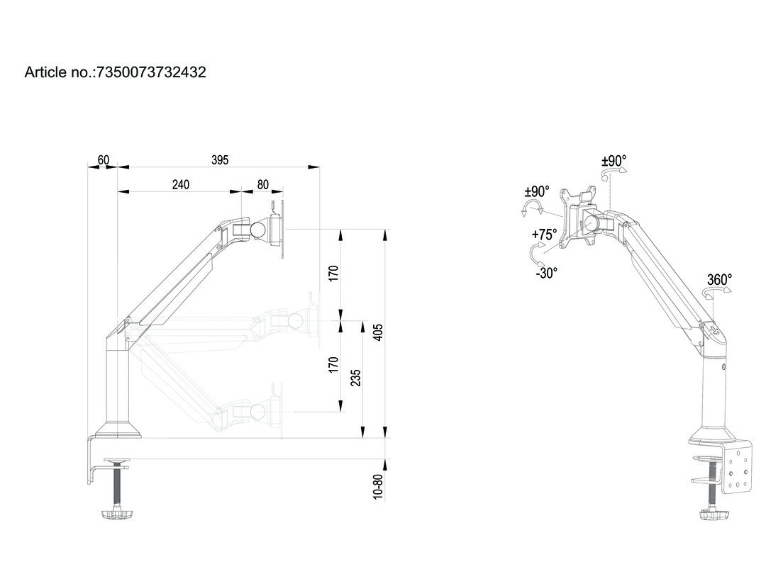 • Desk mounting via clamp or through-hole (max 50mm desk thickness)