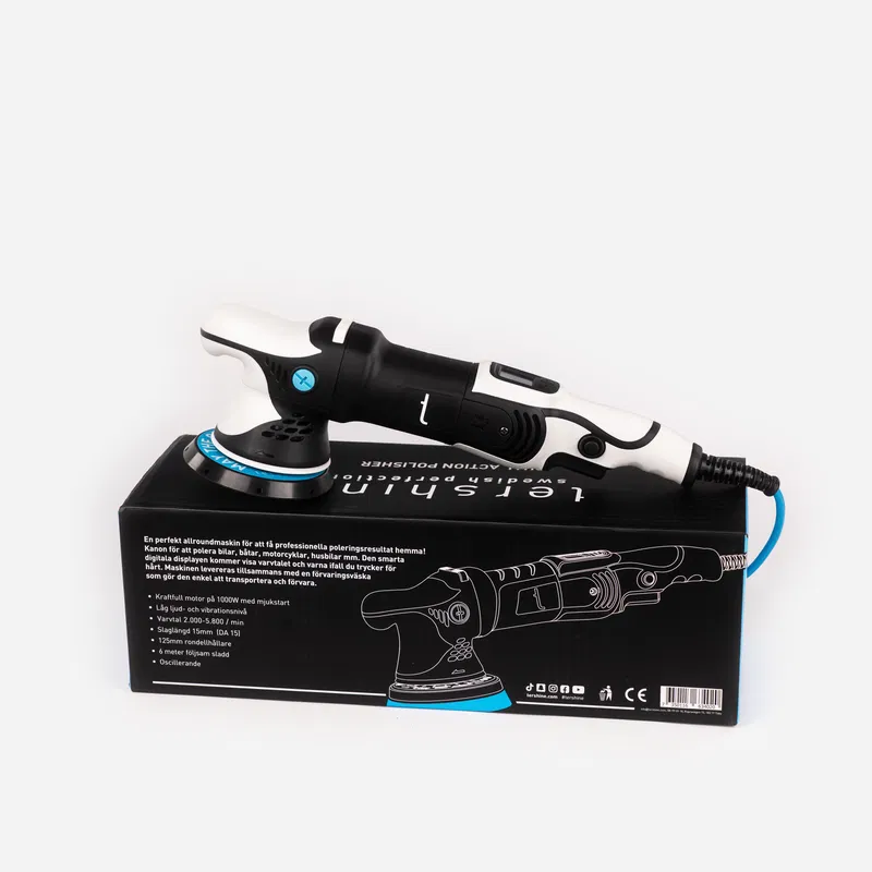 En perfekt allroundmaskin för att få professionella poleringsresultat hemma! Kanon för att polera bilar, båtar, motorcyklar, husbilar mm. Den smarta digitala displayen kommer visa varvtalet, varna ifall du trycker för hårt och meddela ifall kolen i motorn behöver bytas. Nu med uppdaterad interna komponenter samt färgskärm där man enkelt ser vilket varv man är på osv. Kommer med en snygg väska som man enkelt kan förvara sin polermaskin i.
