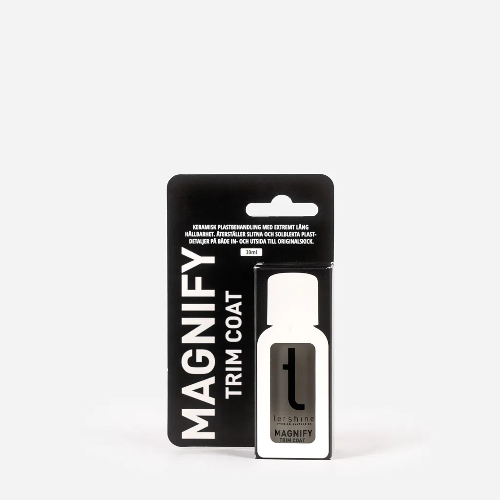 Magnify - Trim Coating är en keramisk coating speciellt anpassad för att användas på plast och gummidetaljer. Återställer plasten till nyskick och håller extremt länge. Mycket enkel att applicera och fungerar lika bra på insidan av ditt fordon på dörrar, paneler osv. Gör plasten mörkare samt ger även ett mycket starkt skydd som gör att ytan håller sig renare och står emot väder och vind.