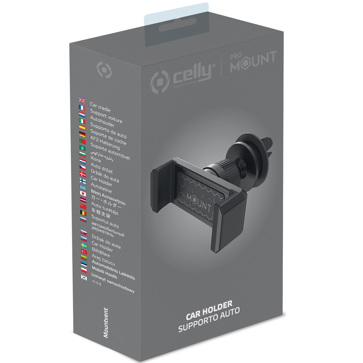 Kör säkert! MountVent360 är en universell smartphone-bilhållare med fäste för fläktgallret.