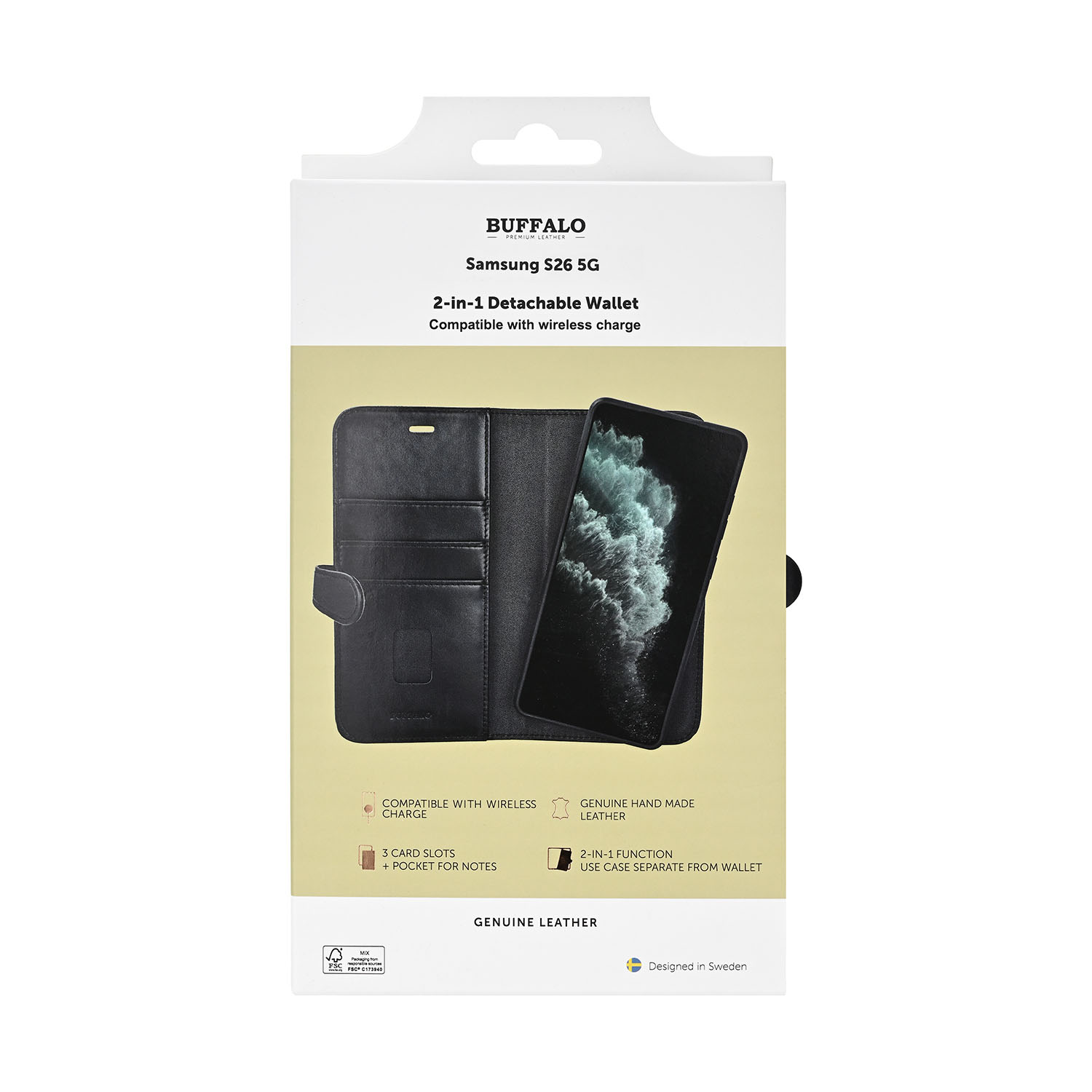 Plånboksfodral BUFFALO Leather 2in1 3 card Magnetic Samsung S26 - Svart