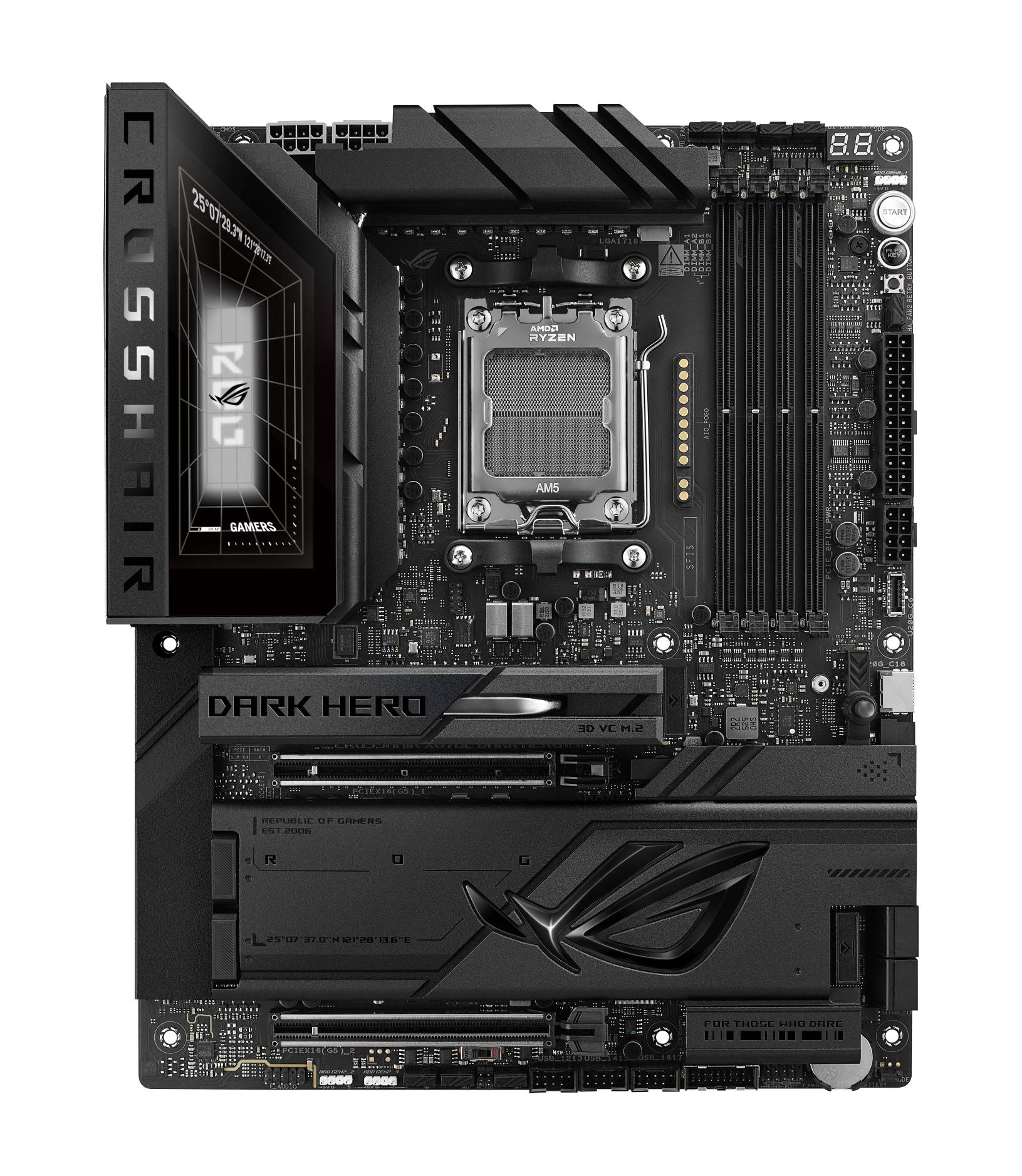 Asus ROG Crosshair X870E DARK HERO, AMD Socket AM5, ATX, 4xDDR5, 6xPCI Express, 5xM.2 + SATA3 RAID, HDMI/2xUSB4, ROG SupremeFX 7.1 audio, 10GbE+5GbE LAN, WiFi 7, Bluetooth 5.4, Aura Sync RGB