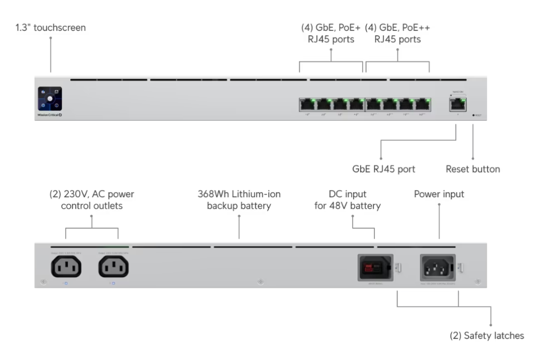 Ubiquiti UniFi USW-Mission-Critical 120W, 4xGigabit PoE++, 4xGigabit PoE+, inbyggd UPS 368Wh Li-Ion