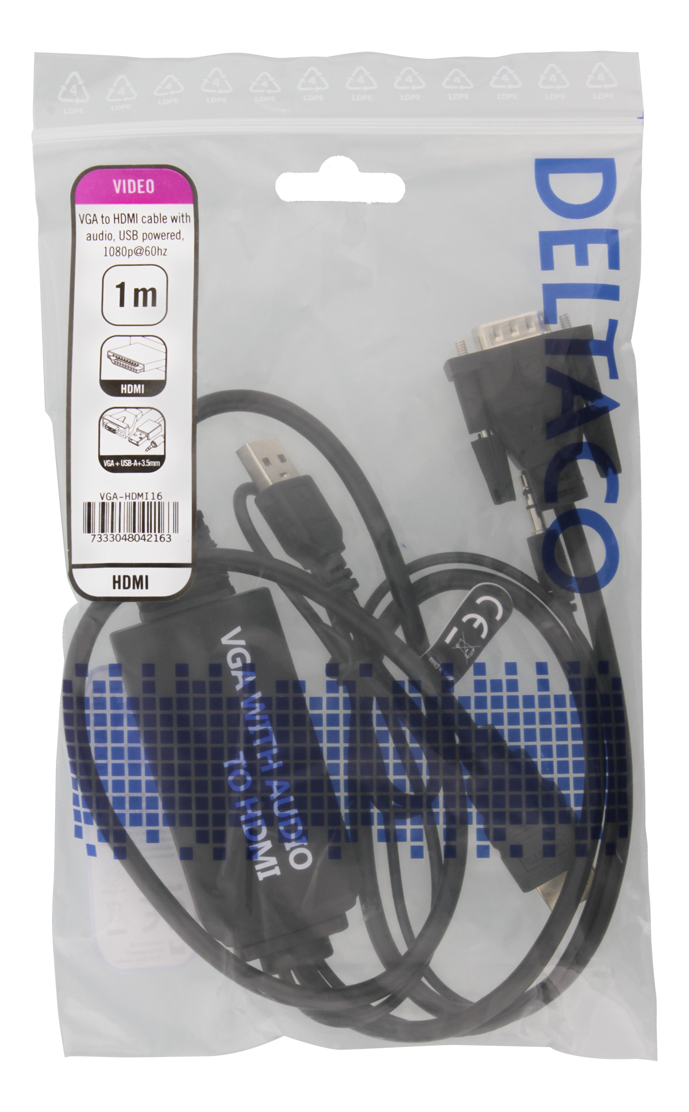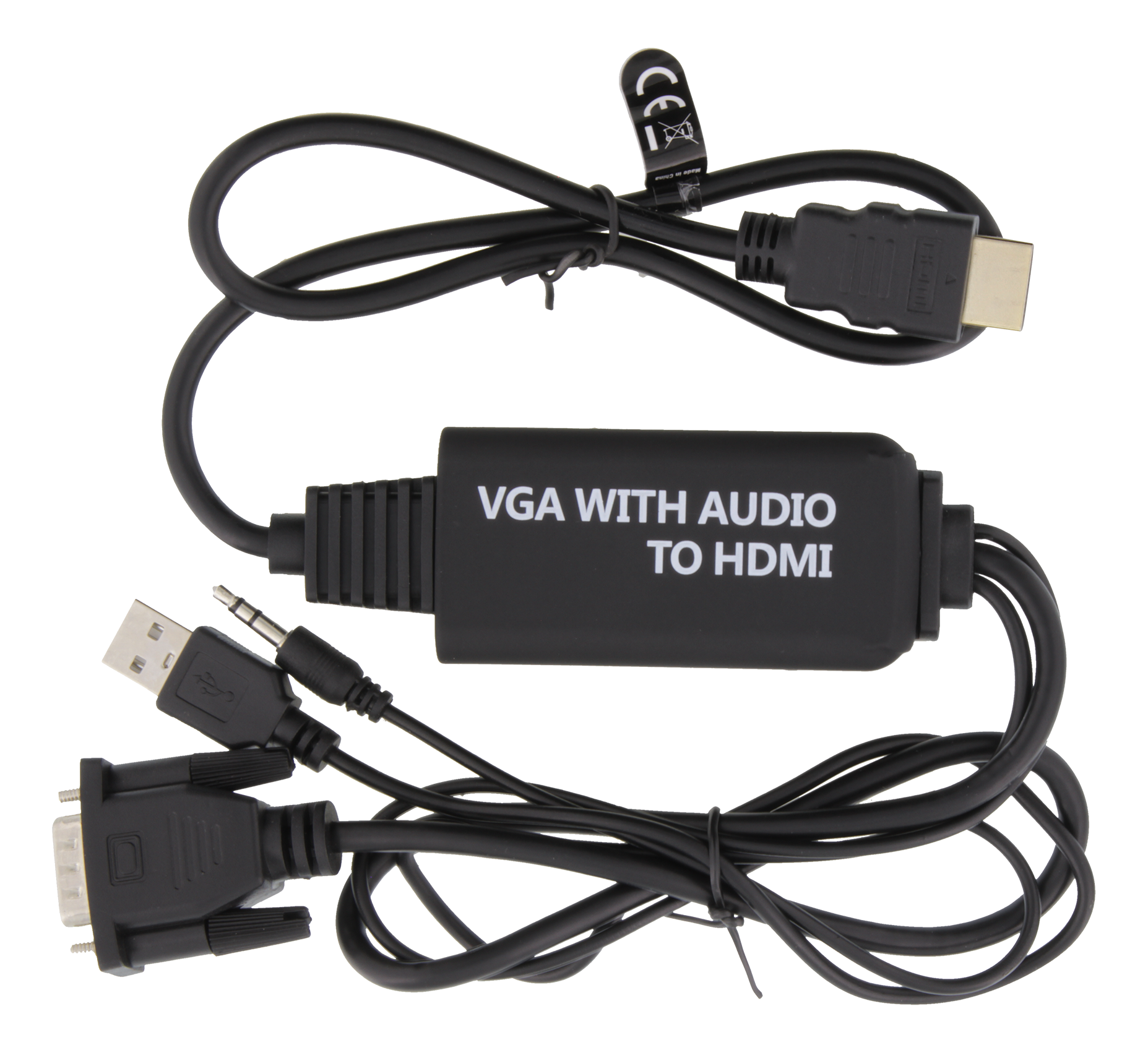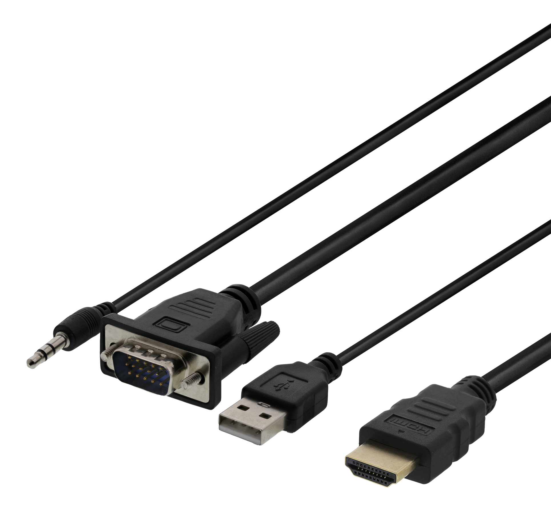 VGA- och ljudkabel till HDMI, max 1920x1080, drivs via USB, 1 meter - Svart
