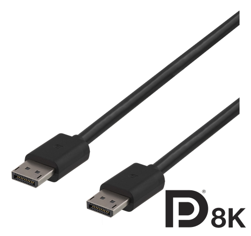 DisplayPort-kabel, DP 1.4, 8K@60Hz, Deltaco, 2 meter - Svart