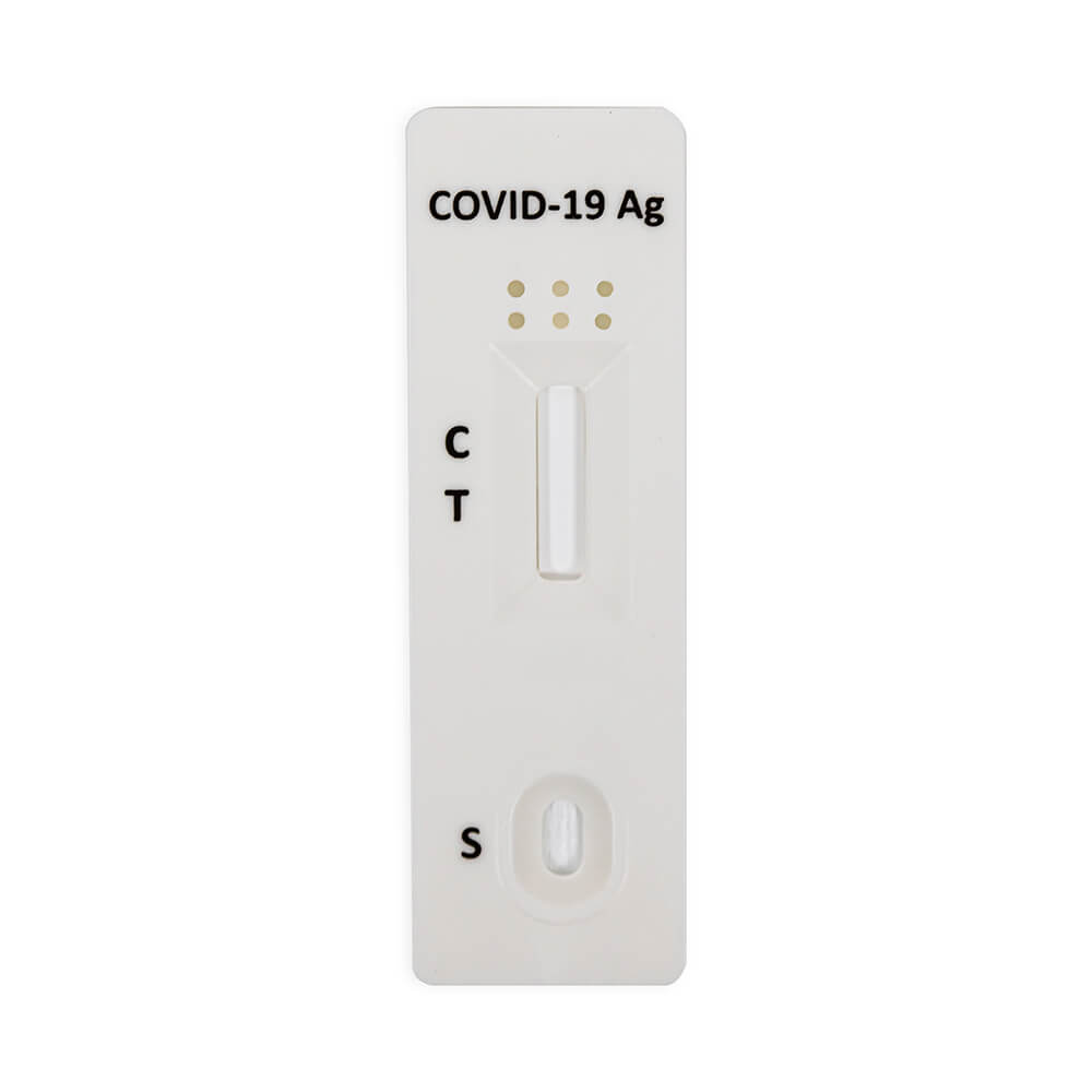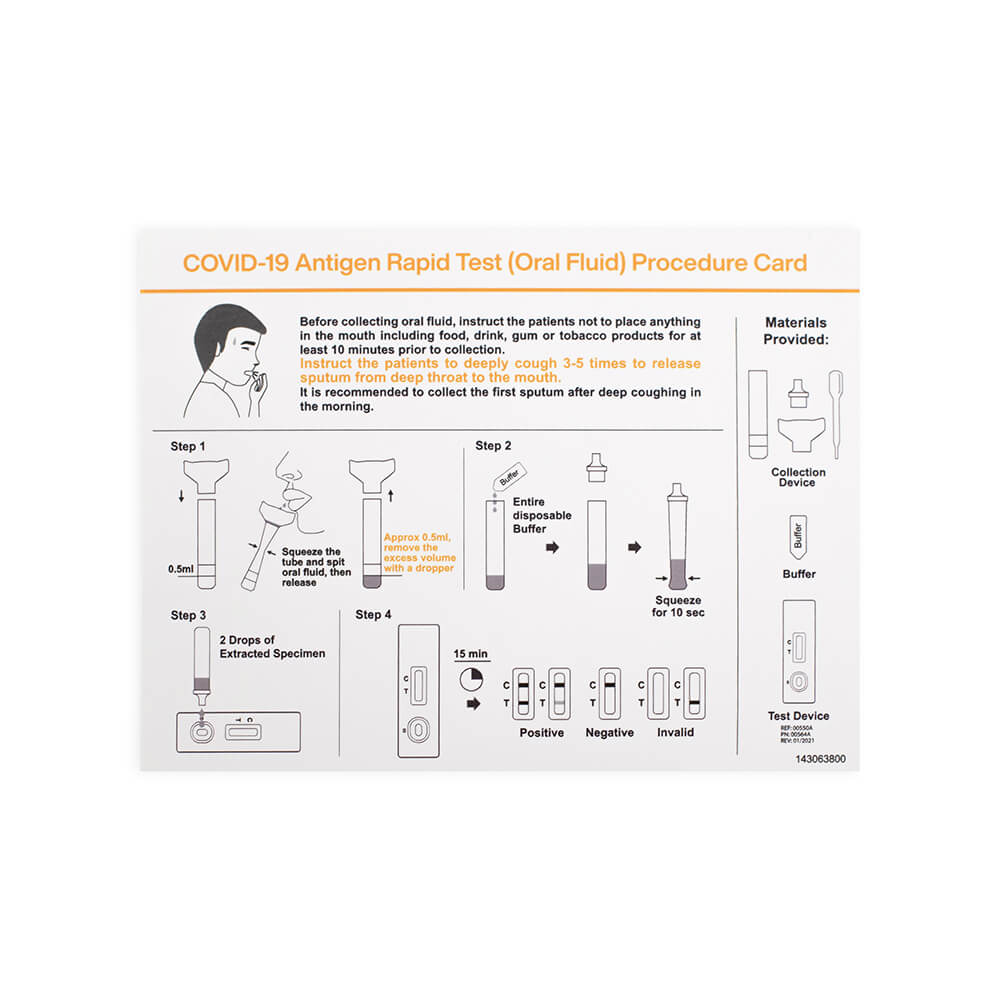 Antigentest som påvisar pågående Covid-19-infektion. Testet detekterar antigener för SARS-CoV-2 i salivprov inom 15 minuter och har en sensitivitet på 94.4%, specificitet på 99.2% och 98.9% noggrannhet.