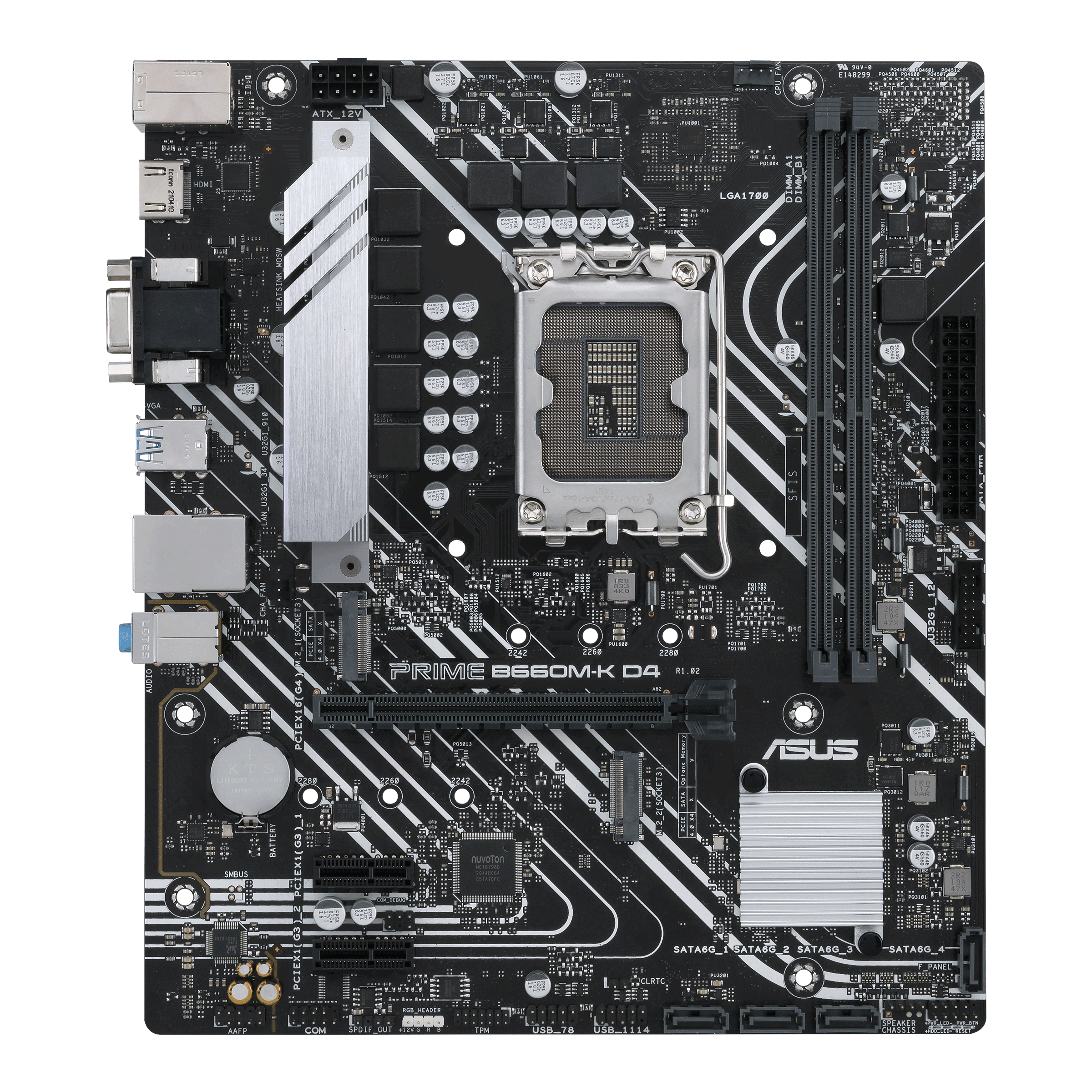 Asus Prime B660M-K D4, Intel LGA1700, PCI Express, MicroATX, 2xDDR4, M.2 + SATA3 RAID, VGA/HDMI, USB 3.2, GigaLAN
